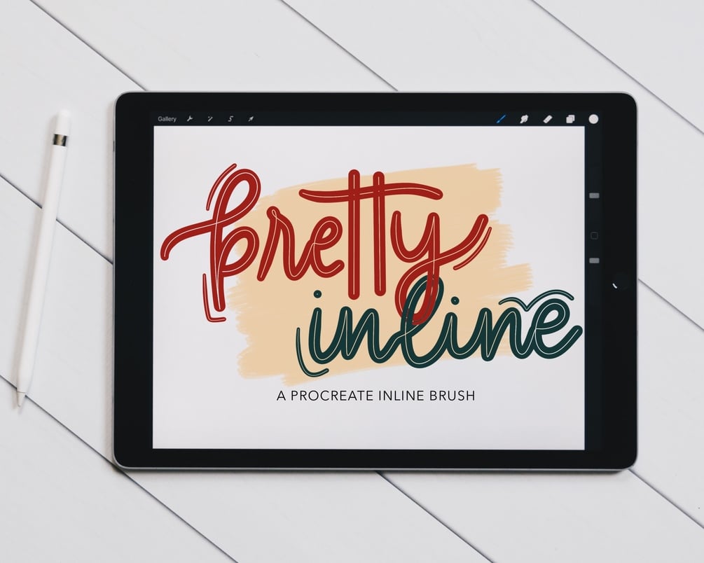 • A Procreate Brush that gives a beautiful transparent inline to your letters